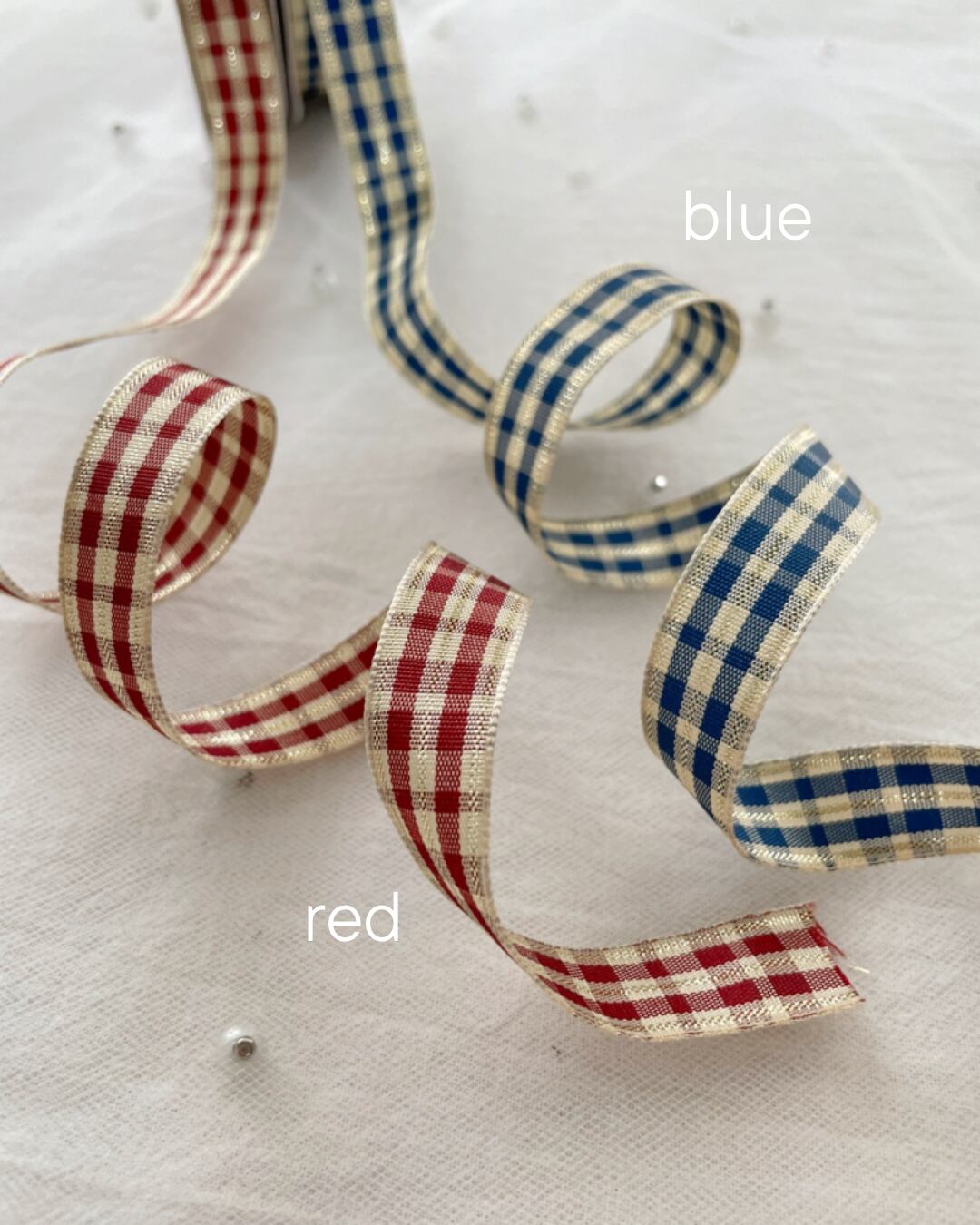 薄手チェックリボン生地です
