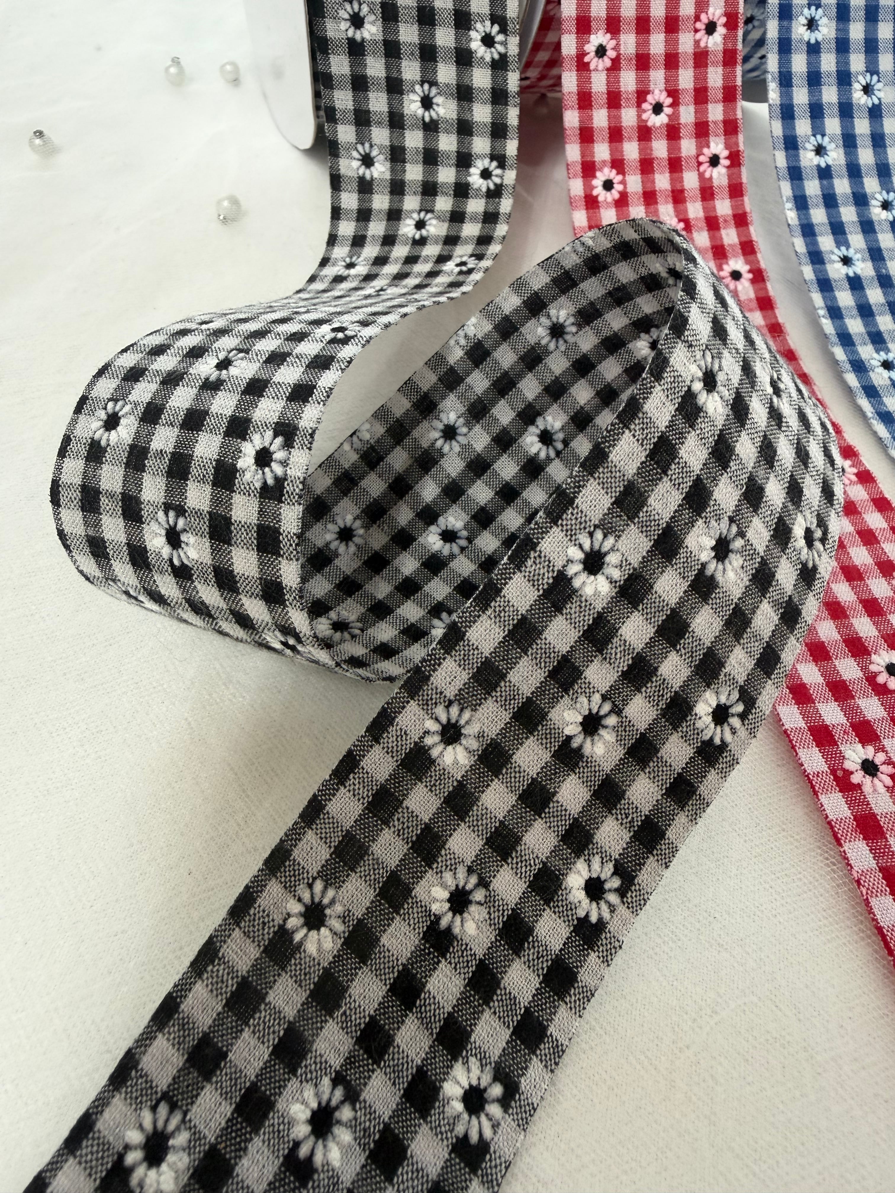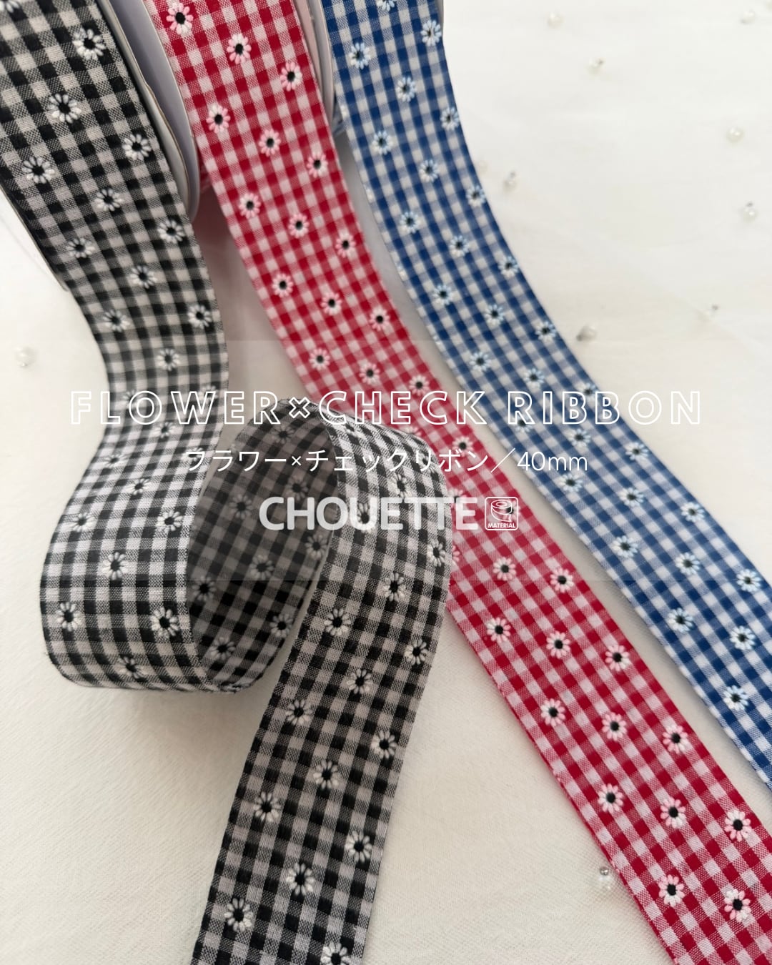40mm/フラワー×チェックファブリック